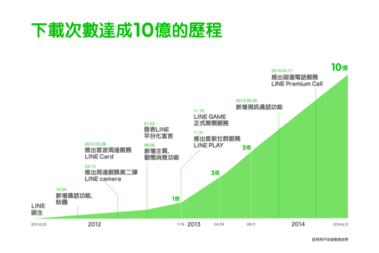 在这个大家庭里,日本、韩国、泰国以及台湾地区是LINE最热闹的地方,这些地方的用户数量占据了相当大的比例。你可以把这些地区看作是LINE的“故乡”,因为它们不仅是最先使用LINE的,也是使用得最多的。